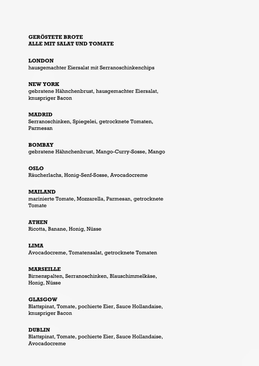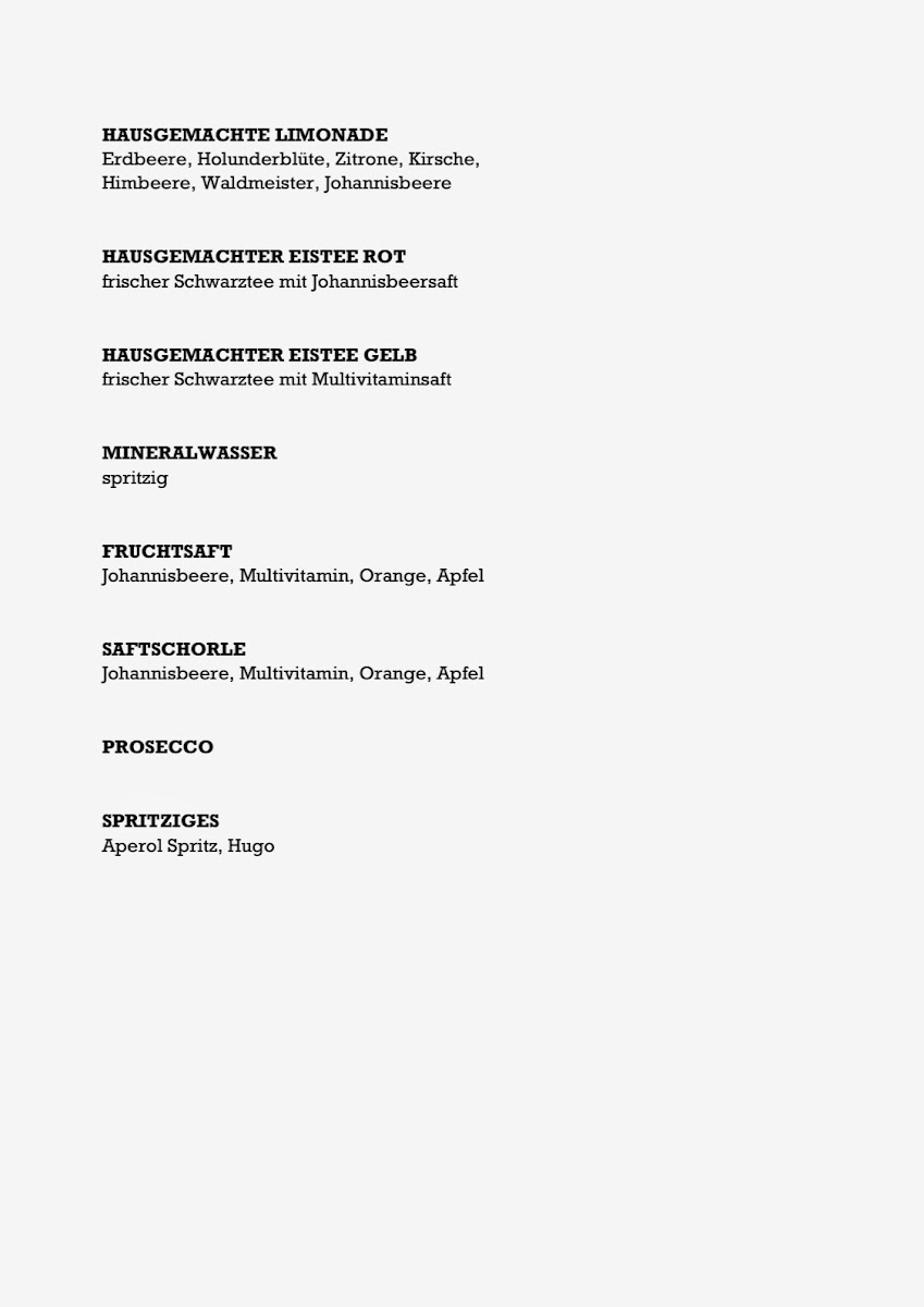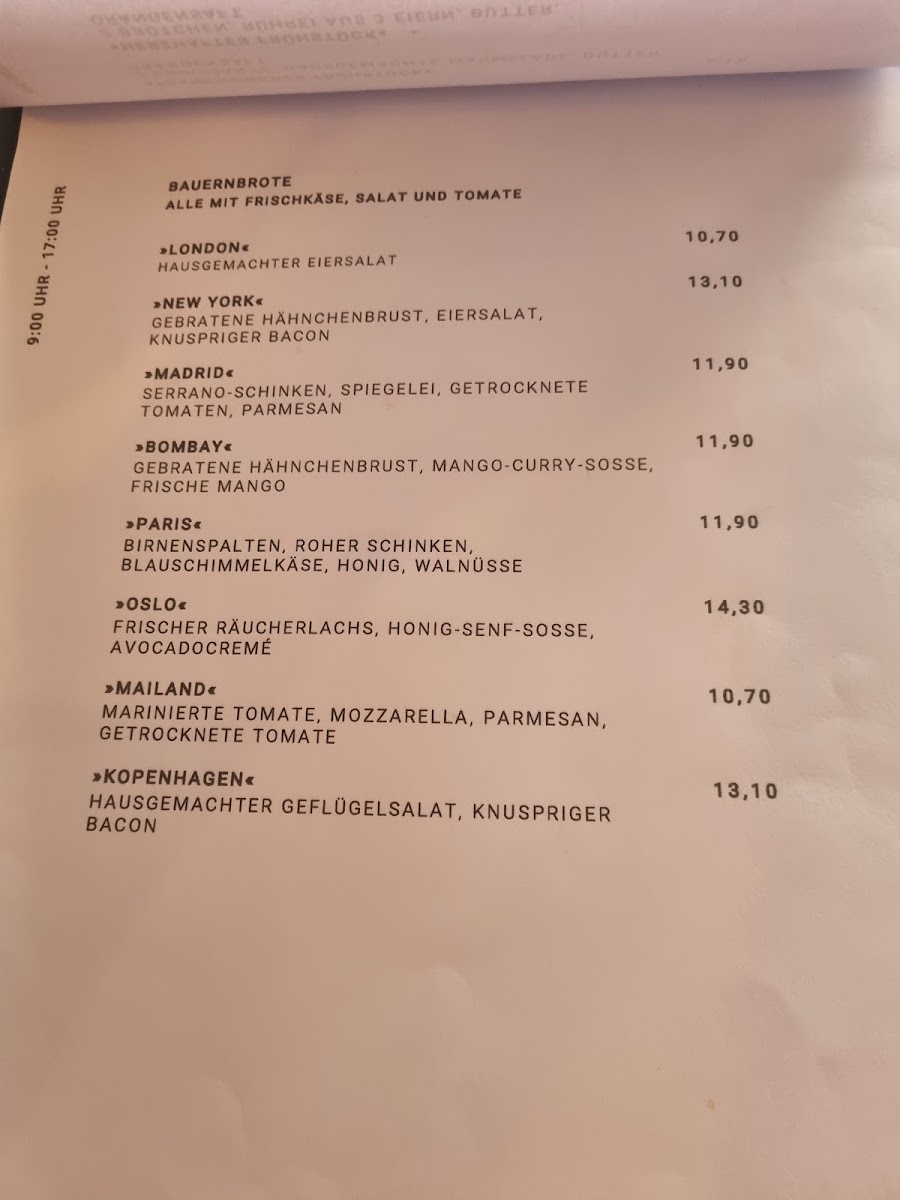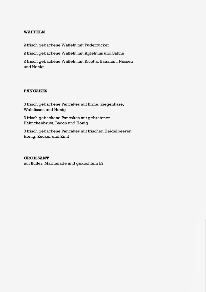 On the drinks side, the café’s selection supports both quick coffee breaks and longer sit-down visits: Kleiner Und Großer Cappuccino makes it easy to choose your caffeine level, while Weisse Schokolade adds a sweeter, more dessert-like drink option. Overall, the menu feels cohesive and approachable-built around familiar flavors, a good mix of light and filling dishes, and a strong café-style lineup that makes it easy to find something that matches your mood.